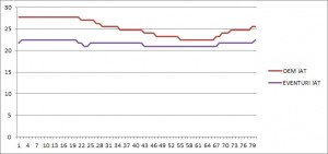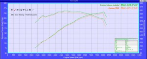 Shown here is a dyno graph showing the comparison between the Eventuri and the stock airbox on a completely standard car with standard map. As you can see, power and torque are increased throughout the rev range and the power curve is even smoother than factory. This translates on the road to increased part throttle and full throttle response with the car pulling much more eagerly to the redline.